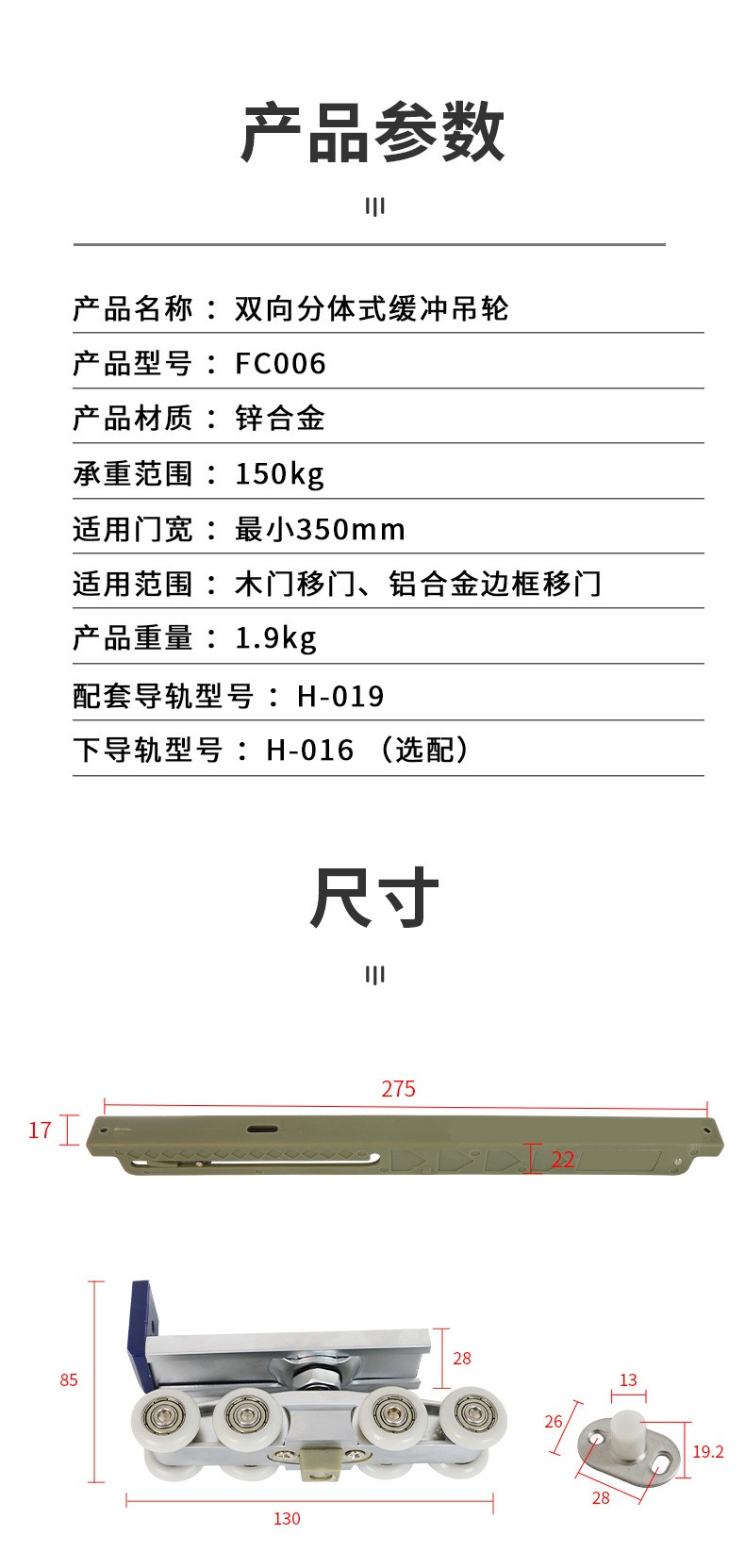 FC006 雙向緩沖分體式移門吊輪吊軌