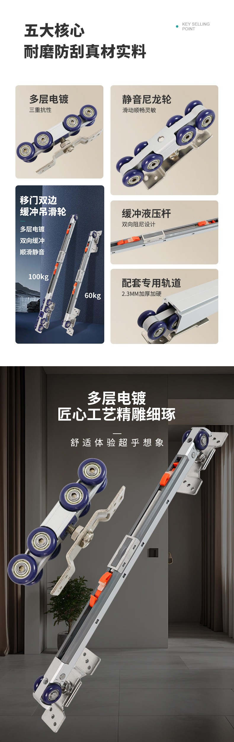 M50 M70-2 承重100kg木門吊輪阻尼液壓滑輪