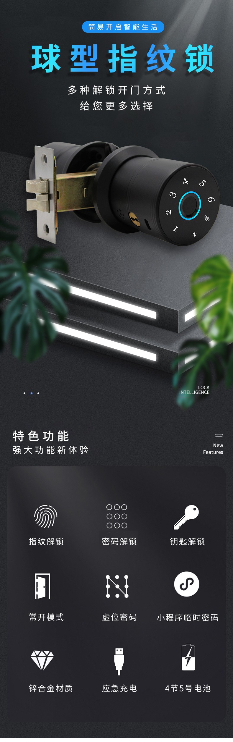 SFL-0012 室內(nèi)木門球形指紋鎖